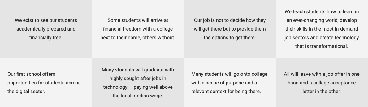 We believe our schools should be preparing every child to build wealth and to benefit from the wealth their communities produce. Every lesson taught and program we adopt keeps this end in mind. Ultimately, our students must seize the opportunities the school creates for them.